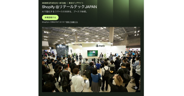 【3/4(水)登壇】『リテールテックJAPAN 2026』のShopifyブースで行われるパートナー企業セミナーにて代表・山崎が「作るECから伸び続けるECへ 〜Shopify時代に再定義される「商品検索」と成長の関係〜」をテーマに登壇