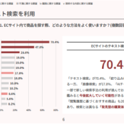 ECサイトの検索手法は「テキスト検索」が70.4%と最多、次いで「絞り込み検索」が47.8%という結果となりました。